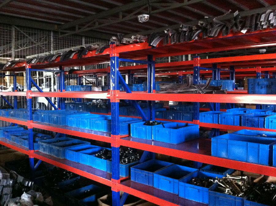 事實(shí)上,重型擱板有許多優(yōu)點(diǎn):柱子是預(yù)制結(jié)構(gòu),鋼卡插入梁和柱之間,鑰匙鎖定以防止脫落。完全組裝結(jié)構(gòu),可組合,便于安裝和拆卸,柱設(shè)置每個(gè)75mm調(diào)節(jié)孔,根據(jù)貨物的高度。適用于散裝、小批量貨物儲(chǔ)存。